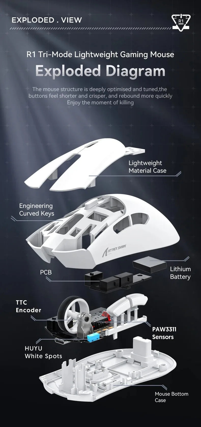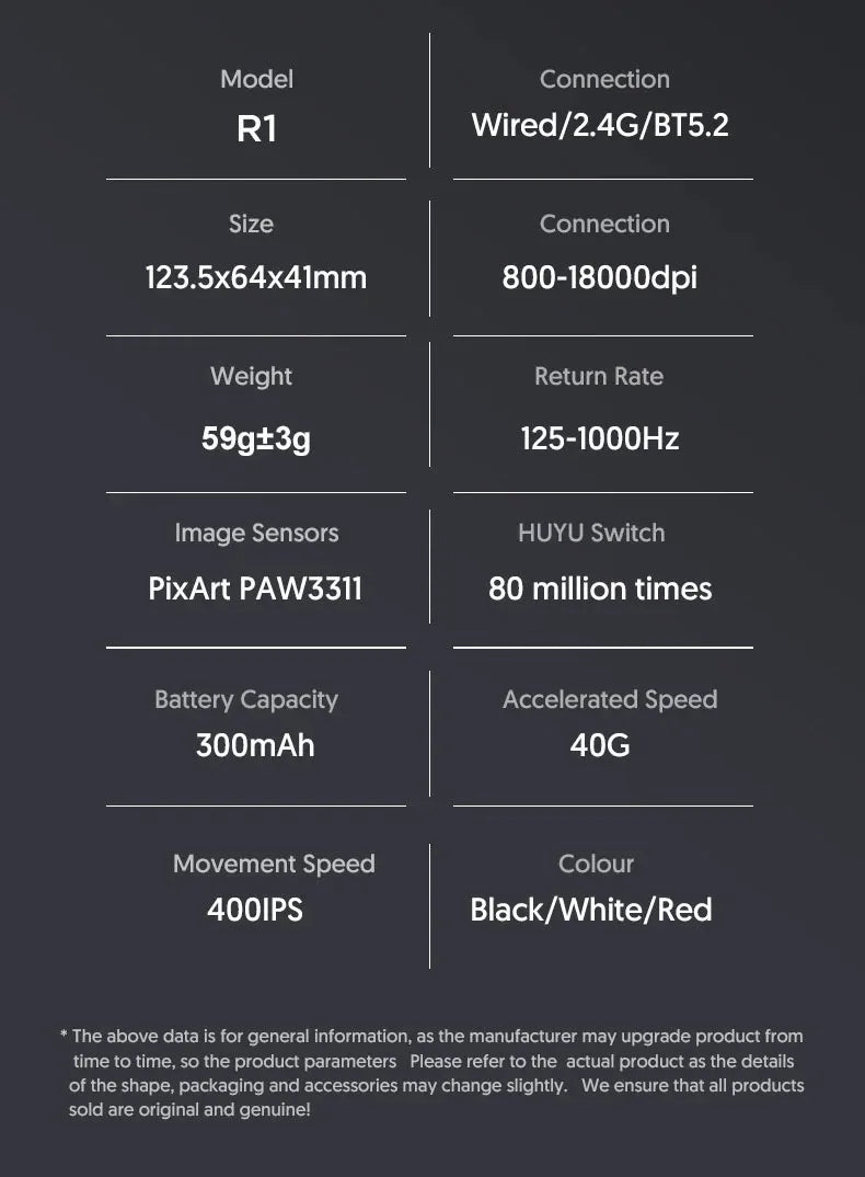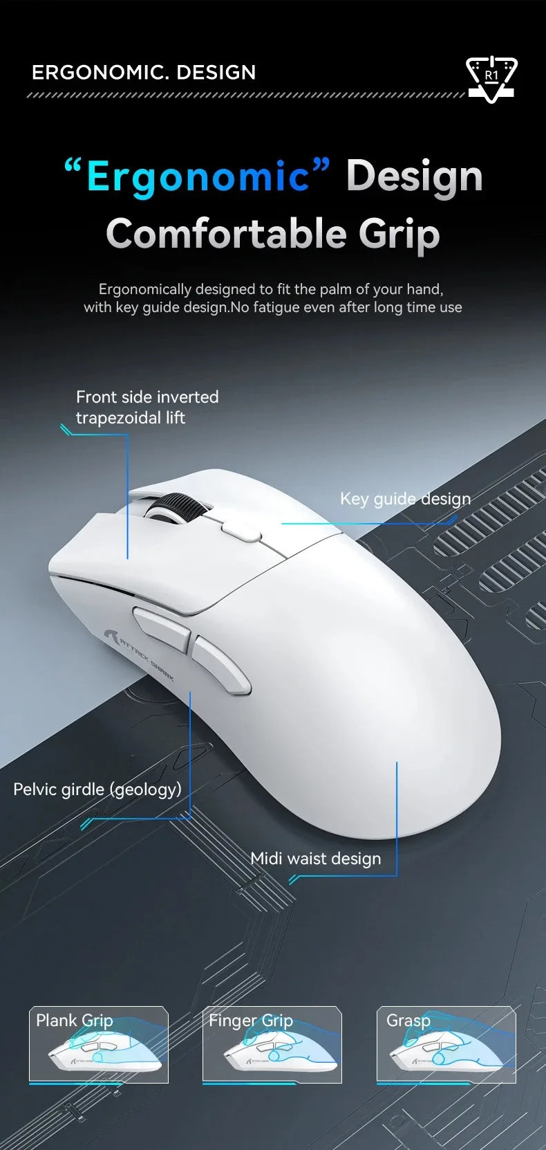 Attack Shark R1 Bluetooth Mouse and Grip Tape not Included Mouse 1000 Hz PAW3311 Sensor,Rechargeable Tri-mode,Ergonomic