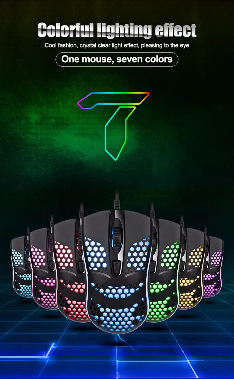 Wired Cable Gaming 7 breathing LED Back Light Optical Mouse USB Computer Hollowed out Mice Laptop Desktop 4D PC home use Office